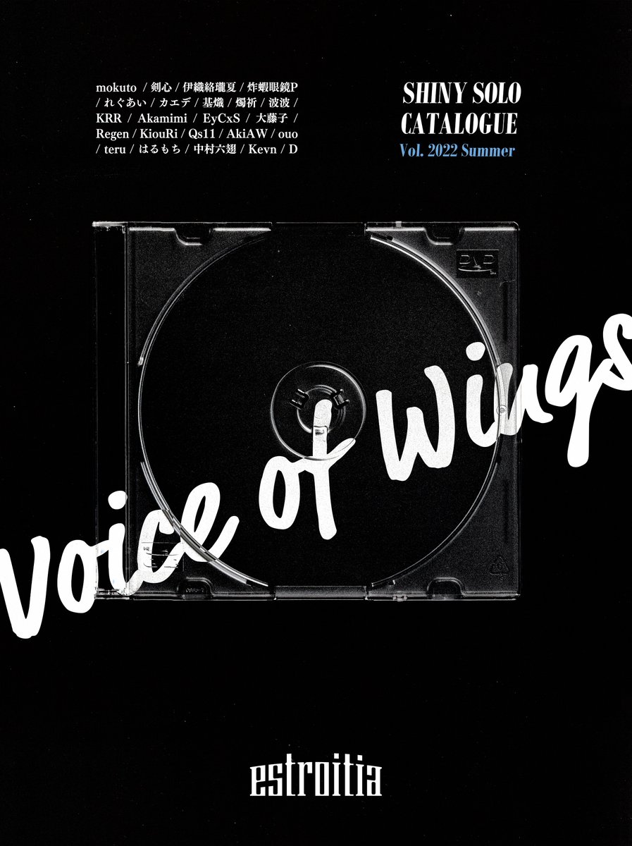#C100 の新刊予告です。 シャニマスのソロ曲に CDジャケットをデザインしよう合同誌、 略して #シャニマスソロCD合同 その題名は、「Voice of Wings」。 ツバサたちの歌を「見よう」。 #estroitia