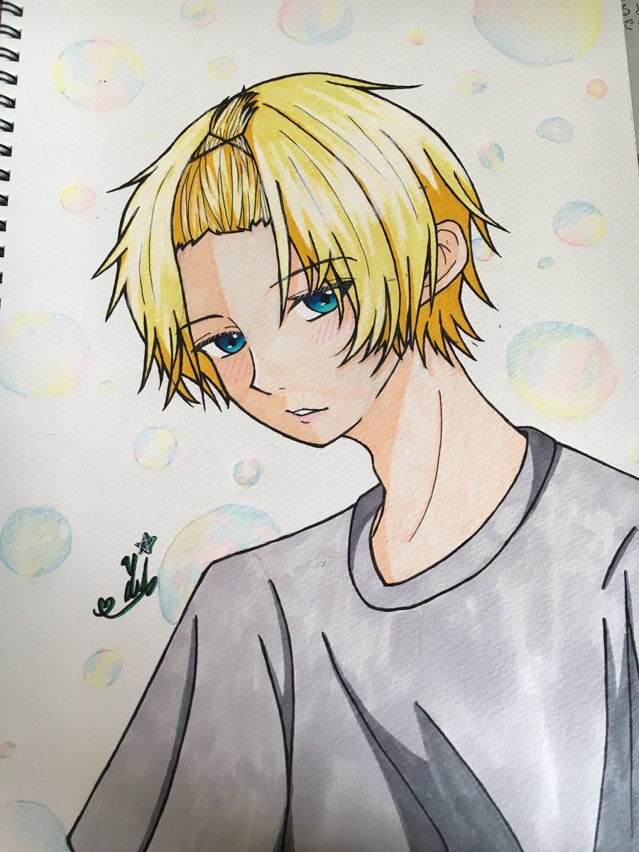 オリジナルキャラ 描いてみた!⚠️自作発言禁止!⚠️ #イラスト #描いてみた #男子イラスト #アナログ絵 #金髪男子イラスト #アナログイラスト #コピックイラスト #シャボン玉イラスト #コピック初心者 #ホワイトペン初心者 #絵描きさんと繋がりたい #絵描いてる人と繋がりたい