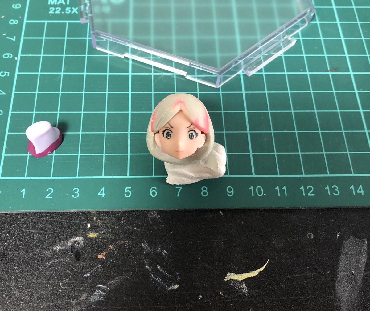 メイド長さん。 前髪生え際の部分をパテでとりあえず埋めました。 前髪は暦の前髪で生え際まで使おうと思ったのですが合わなくてパテで。 とりまコレだけでもベルファストっぽく見えるかなぁと💦 #アズレン造形部 #シャムロック模活中