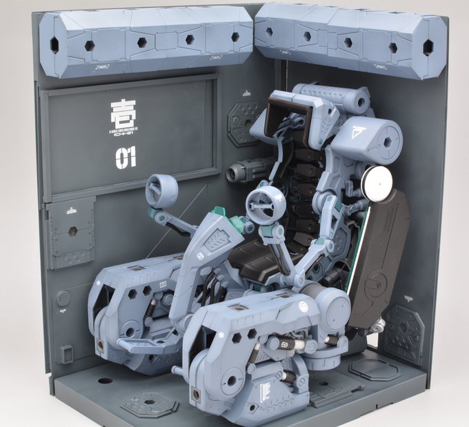 マルチコックピット完成しました(╹◡╹)✨ オーダークレイドルなどのパーツとプラ板で作成。 壁面は取り外し可能。 ウィンドスクリーンは背景紙の差し替えで色々な戦場を再現。 そして楽しくブンドド! これでどんなロボットにも搭乗出来ますね(*゚▽゚*) #シャムロック模活中
