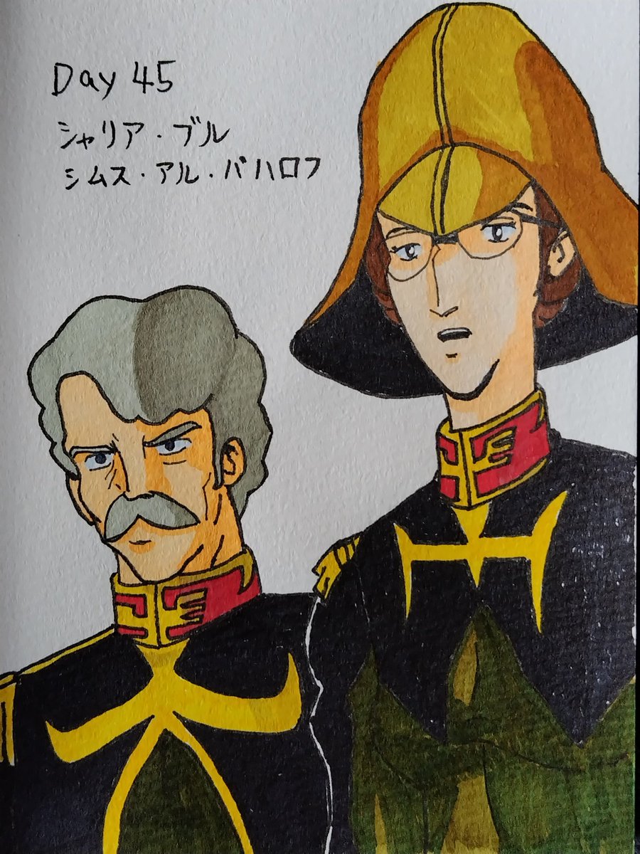 Day45 シャリア大尉とシムス中尉 シャリア・ブルさんは、技量的にも人格的にもエース感あっていいですよね。 #100日チャレンジ #アナログイラスト #機動戦士ガンダム #シャリア・ブル #シムス・アル・バハロフ