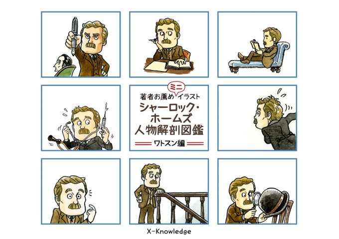 『#シャーロック・ホームズ人物解剖図鑑』の著者おすすめポイントその3。各作品毎にホームズとワトスンの“見どころ”を中心にまとめたイラストコラムを載せています。名シーン・名台詞・今回のワトスン君などなど。各作品のお薦めポイントをイラストでご紹介しています(*^^*) xknowledge.co.jp/book/978476783…