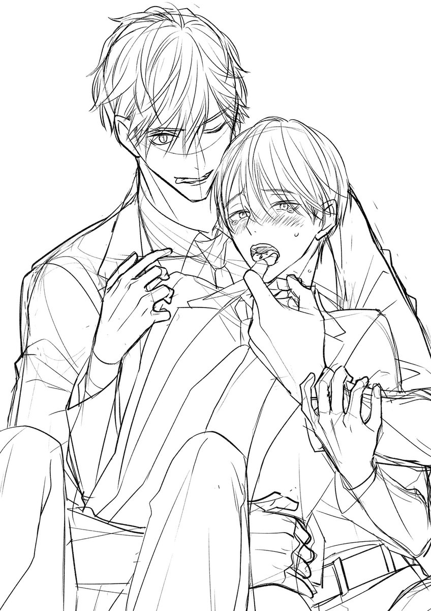 『いびつなシュガーモンスター』 カラー扉のラフお蔵出しです😈🐣❤️ 表情とか微妙にラフの方がよかったかもってなるやつ…あの現象なんなんだろね🤔 1話配信中です🙇♀️❣️ → cmoa.jp/title/268512/ #いびつなシュガーモンスター #シュガモン #創作BL