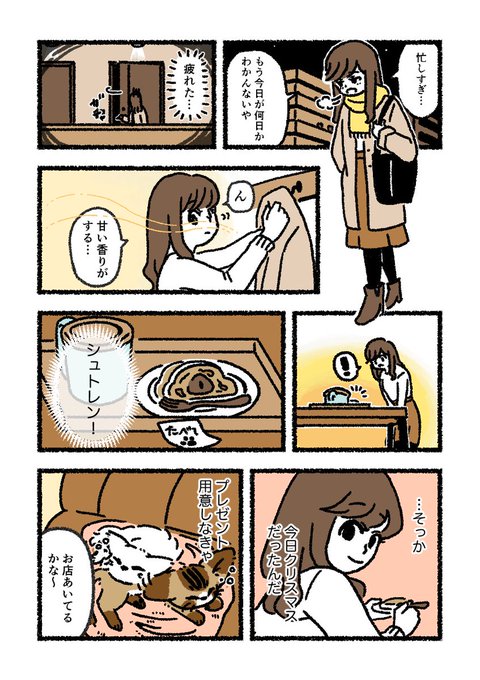 21話「クリスマスのおつかい」のおまけ漫画です。 後編の続きになってます。 #漫画が読めるハッシュタグ #漫画 #オリジナル漫画 #創作漫画 #クリスマス #シュトレン twitter.com/nekogusa9/stat…