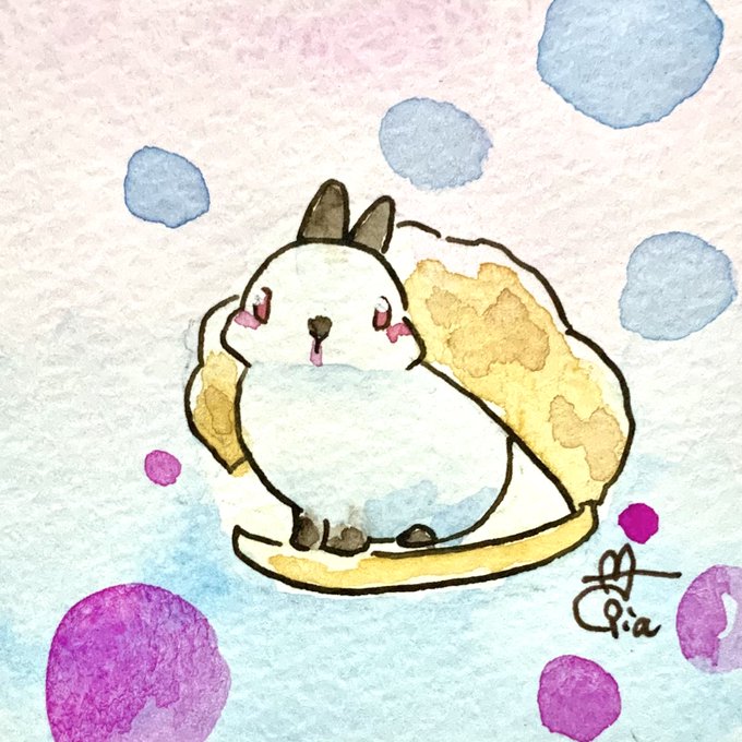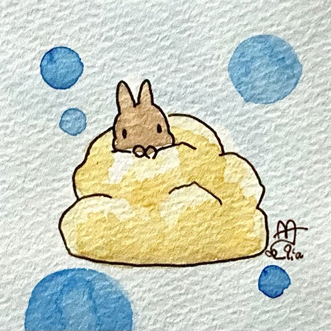 ちょっと待って、毎月シュークリームの日ってあるんじゃない?もうそろそろどう描けばいいかわからないよーーーーー‼️ #シュークリームの日 #illustration #art #イラスト #rabbit #うさぎ #透明水彩