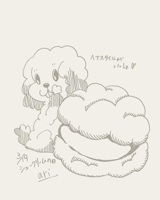 投稿前に寝てしまう😅描き終えて、安心してしまうのね💦多分。 19日は #シュークリームの日 でした😋トイプードルさんと並べると、ふわもこ感がたまらん💕 話は大きく変わりますが、WBC決勝進出🎉最後まで緊張感たっぷりでしたが勝利です!最後は🇺🇸との一戦😤楽しみですっ! #イラスト #ペン画