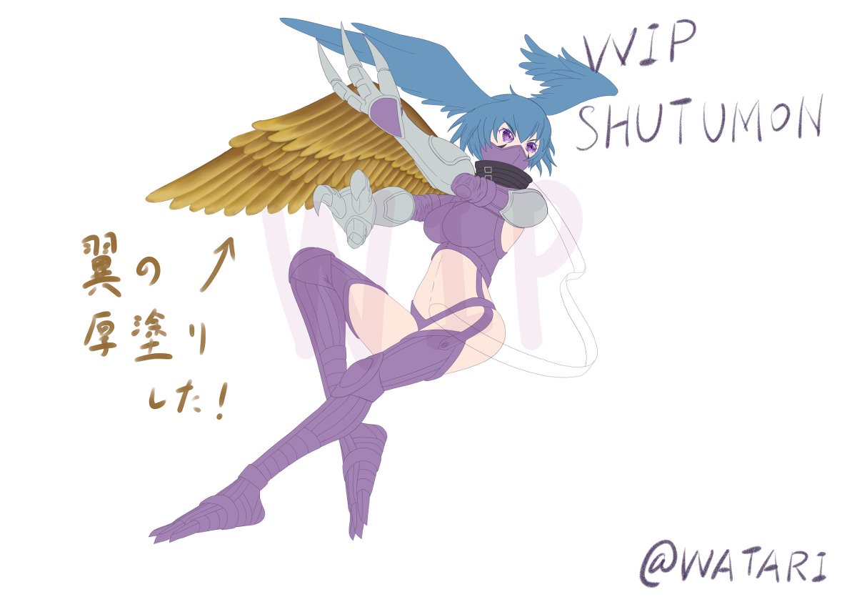 イラスト進捗:やっぱり厚塗りは楽しい絵描き体験を得られます #シューツモン #デジモン #Digimon #イラスト進捗 #毎日投稿 #たまには全体公開します。 pixiv.net/artworks/99251…