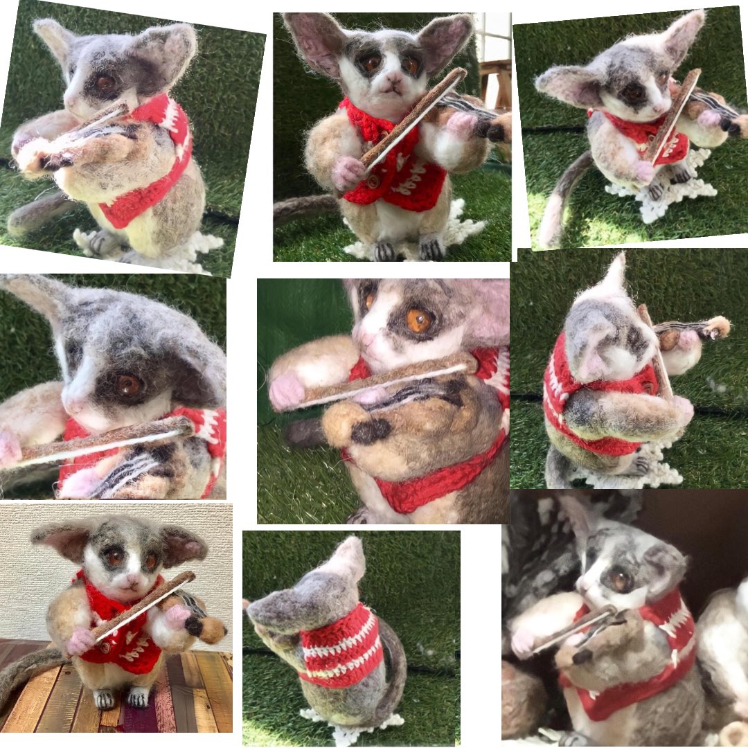 羊毛フェルトのショウガラゴのバイオリニスト タノメイクからご購入は tanomake.com/products/4352 Pinkoiからはこちら、海外の方も 私、モンシェリモモをフォローすると10%割引きクーポン券贈呈 jp.pinkoi.com/store/moncheri… #ショウガラゴ #羊毛フェルト猿 #羊毛フェルトショウガラゴ#Galagosenegalensis