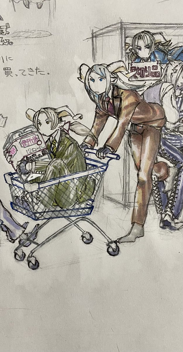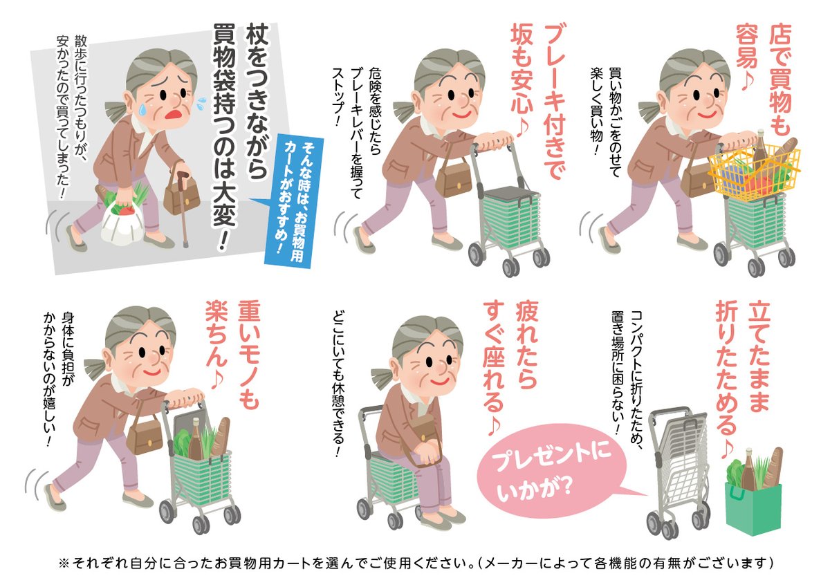 足腰が弱くて買物に行くのが大変な高齢者が多いと思います。杖をつきながら買い物袋も持ちながら帰途につく方を見ると、お買物カートを買ってあげようかなと思っていただけるようなイラストをいろいろ描いてみました。(^^)/ taga-studio.jp/keironohi_03.h… #illustrator #ショッピングカート #イラスト