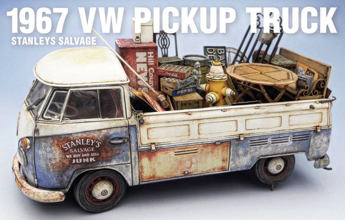 昨年11月ごろから作り始めたドイツレベルのVWtype2レイトバス、年末年始のお休みを使って大体形となりました。そういやこいつのドアミラーのパーツを折って床に落としたのを探していたら年を越したんだよね。#今月作ったプラモ晒そうぜ #ショップカー #VWtype2