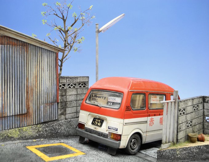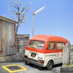 以前作った作品に置いてみたらあらいい感じ。フォレストカフェ小屋になりました。 Gentlemen for Wheels 1 デカール&カラーガイドセットであなただけのお店をどうぞ。 hal-val.shop #ショップカー