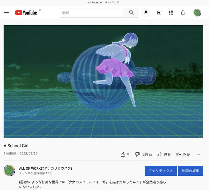 新作ショートアニメを更新しました。 編集ソフトを使うと途端にクオリティが上がった風(ふう)になりますね。BGMがいまいち内容と合ってないのでこちらは後日作り直すかもしれません。 youtube.com/watch?v=qtxtWa… #animation #ショートアニメ #indiefilm #illustration