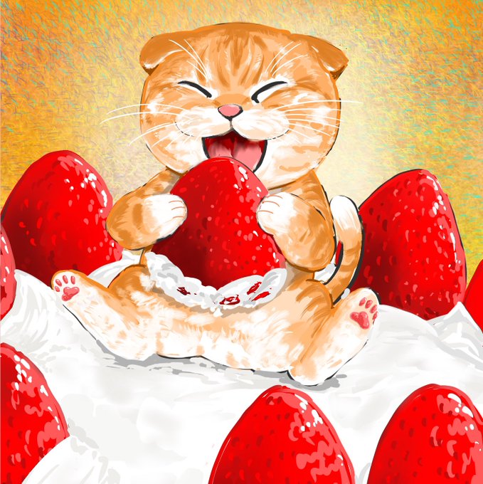 ケーキニャンコ🍰 #ipadpro #プロクリエイト 毎月22日はショートケーキの日ニャ〜🍰 お腹いっぱい食べたいニャ〜💕💕🍰💕 #ショートケーキ #ショートケーキの日 #Shortcake