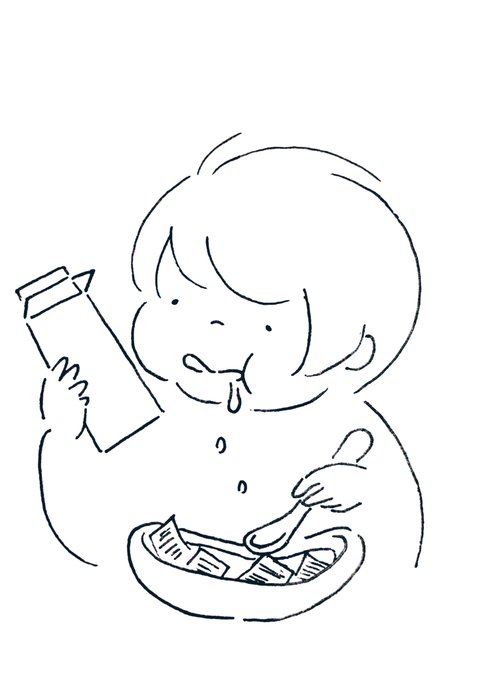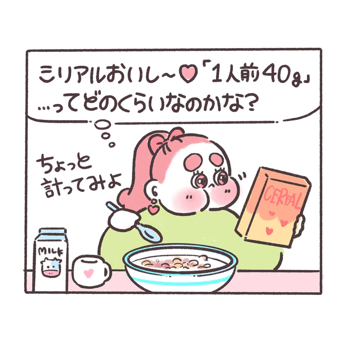 シリアル一人前🥣 🍟「5人前よりもっと食べてるかも😊」 #ぽちゃ日和 #イラスト好きな人と繋がりたい #絵描きさんと繋がりたい #絵師さんと繋がりたい #4コマ #食べ物イラスト #シリアル #適量 #ボディポジティブ #bodypositive