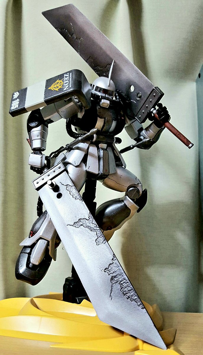 #シルバーな模型を見せて 模型始めたばっかりの頃に作った百瀬専用ザク 改造ましてやスクラッチなんて夢のまた夢って感覚でしたので武器はクラウドのバスターソードをそのまま持たせてます シルバーのザクってそういえばあんまり見掛けない気がしますね