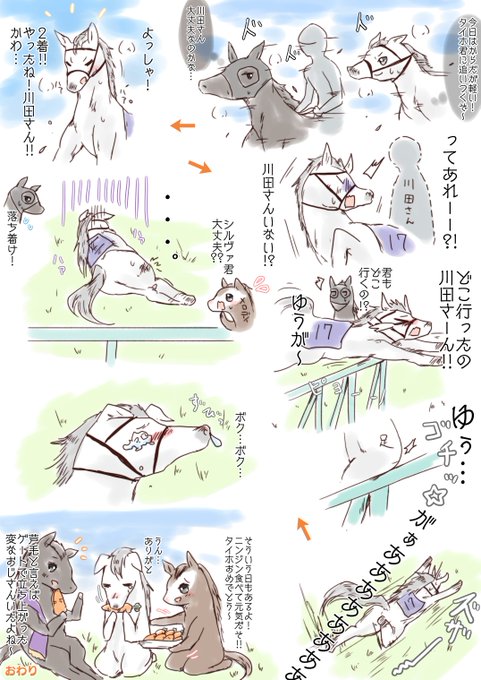 今日のメロちゃん 265 まだまだ春天! ???「#シルヴァーソニック …。芦毛であの派手な立ち回り…俺の子では?」 何はともあれ今日も異常なしとのニュースを見て安心👍 メロちゃんの快挙も忘れないでね! 次回タイくんの勝利記念イラストを…! #メロディーレーン #オルフェーヴル