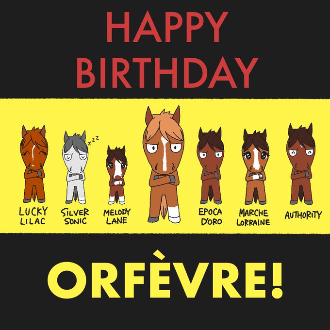 今日のオルフェーヴル 今日はオルフェーヴルさまのお誕生日です👏 現役時から今まで、ステゴ一族を引っ張る偉大な存在であり続けていますね。子供たちは強くて個性的! #オルフェーヴル #ラッキーライラック #シルヴァーソニック #メロディーレーン #エポカドーロ #マルシュロレーヌ #オーソリティ