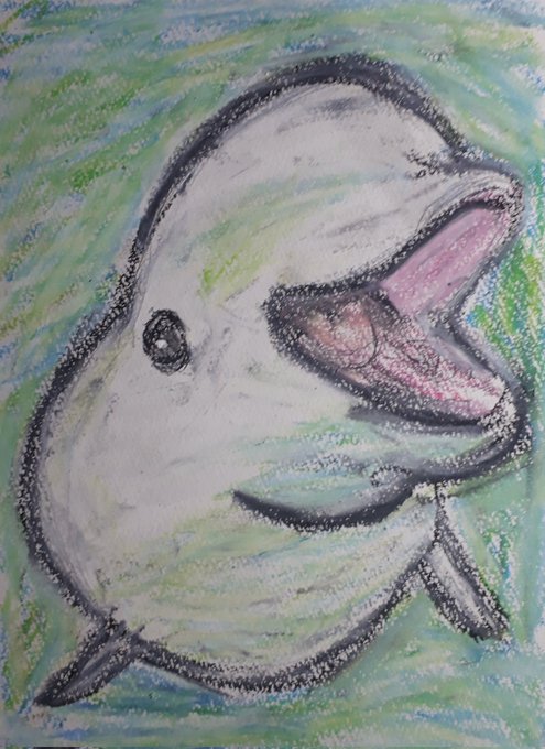 サクラクレパスで シロイルカを描いてみた #シロイルカ #イラスト #イラスト好きさんと繋がりたい #絵描きさんと繋がりたい #アナログ絵描きさんと繋がりたい #art #illustration #sketch