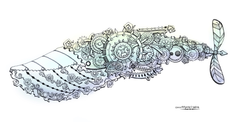 おはようございます(о´∀`о) 今日もよろしくお願いします✨ ⚙シロナガスクジラ⚙ #スチームパンクイラスト #歯車イラスト #シロナガスクジラ #ペン画 #アトリエの系譜S #絵柄が好みって人がいればいいなぁ