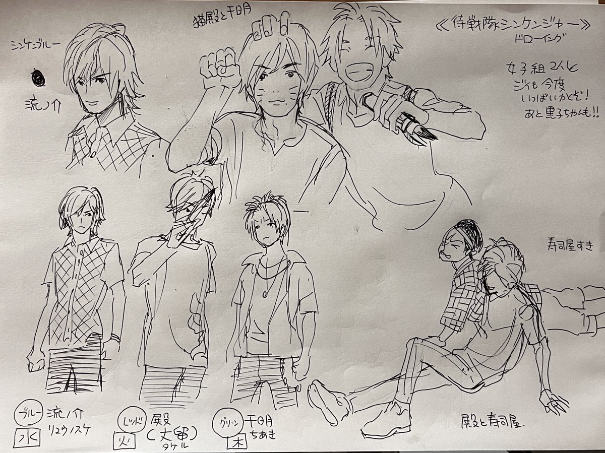 #侍戦隊シンケンジャー の6人、変身前姿で描きました。 ストーリーハラハラ、全員キャラが立ってて...最高に面白い戦隊でした。子供たちの初戦隊でこれで漢字覚えてましたね。 シンケンレッドで殿だった #松坂桃李 くんも、お父さんになるんだなあ…。おめでとうございます🎉 #シンケンジャー