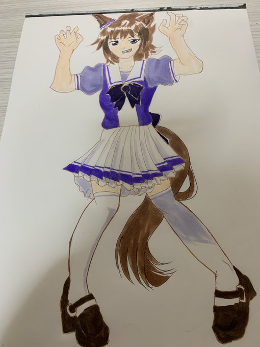 練習40日目ウィンディさんです。私服も勝負服も無いから制服でいきました。コピックアプリ(最近入れた)でやっと制服の色が見つかったので塗ってみたけどしっくりきますね!手が地味に苦労しました😅#ウマ娘 #絵描きさんと繫がりたい #イラスト #アナログイラスト #シンコウウィンディ