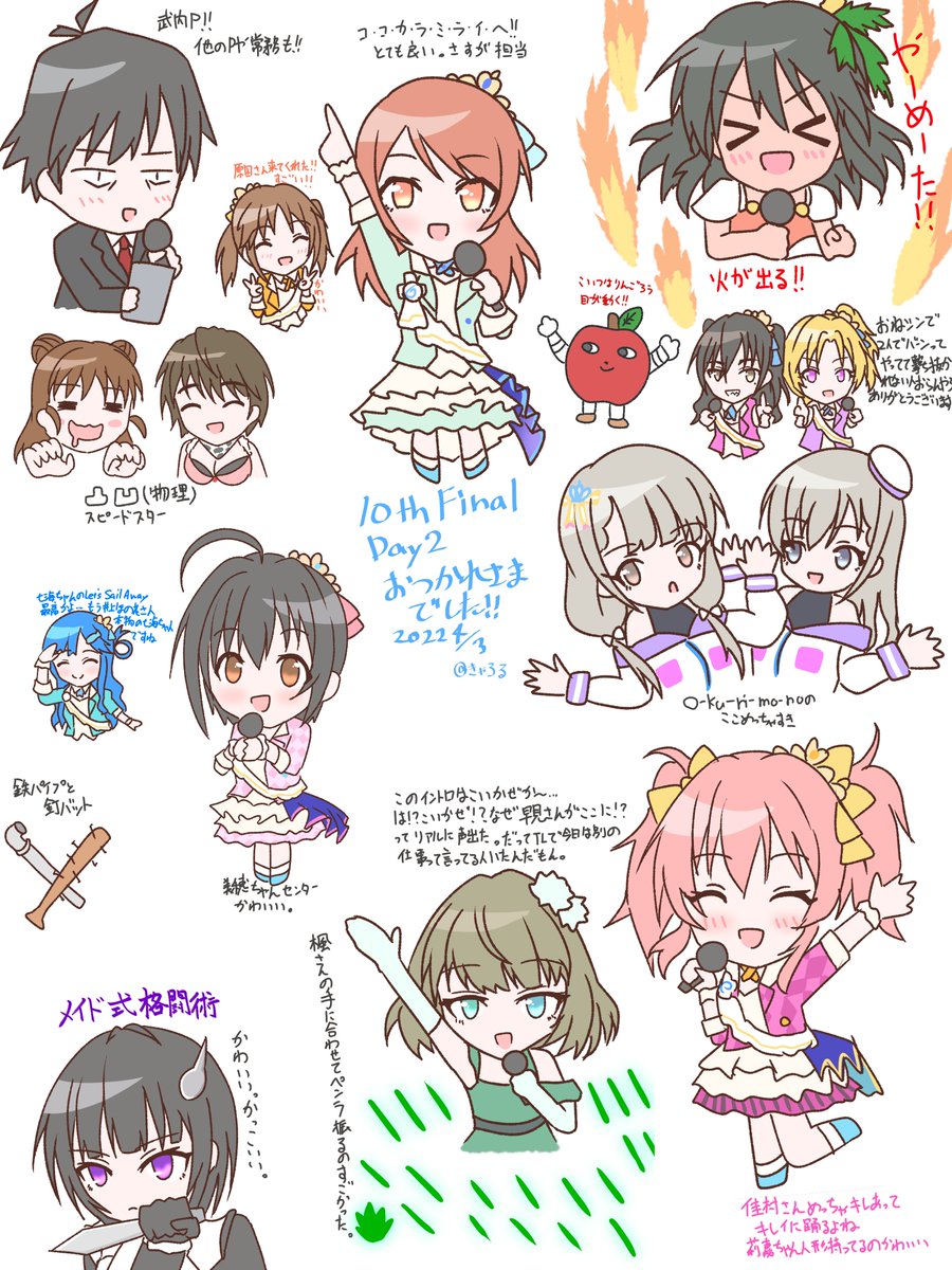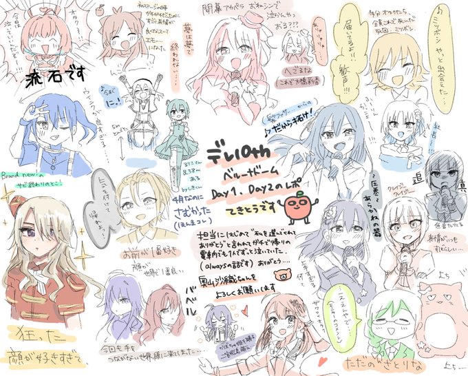 取り急ぎDay1とDay2で描いたやつをまとめました。実際は描ききれないくらいもっと色々ありましたが…() とりあえず最高の経験でした! #シンデレラ10周年_ファイナルday1 #シンデレラ10周年_ファイナルday2