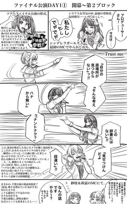 デレファイナルの感想絵日記的なものを描きました アーカイブで記憶補完してないので衣装とか違うかも…🙇🏻♂️ 本当はもっとたくさんのアイドルの名場面描きたかったけど多すぎるし力尽きました… とにかくありがとう!!と言いたい #シンデレラ10周年_ファイナルday1 #シンデレラ10周年_ファイナルday2