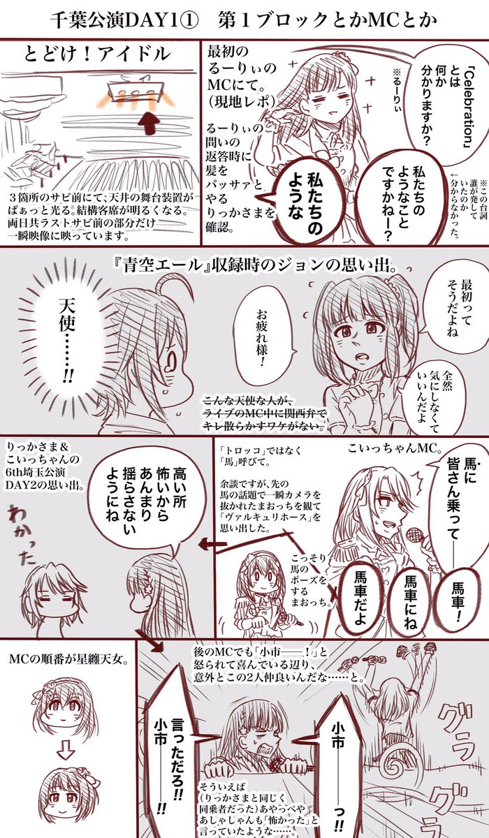 遅ればせながら、シンデレラガールズ10周年ツアー千葉公演DAY1お疲れ様でした。 現地レポ少しありますという感じの今更レポ風漫画です。 まりえってぃ&りっかさまは今日も通常運転です。 「小市ーーっ!!」 とある演者個人の現地レポはまた後日。 #シンデレラ10周年_千葉day1