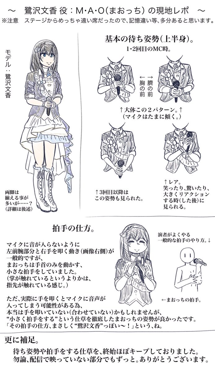 遅ればせながら、千葉公演DAY1に出演された、 鷺沢文香 役:M・A・O(まおっち)さんの現地レポを描きました。 配信に映っていない部分をメインで描いてます。 「そんな所まで描く?」ってぐらい念写しました。 #鷺沢文香 #シンデレラ10周年_千葉day1