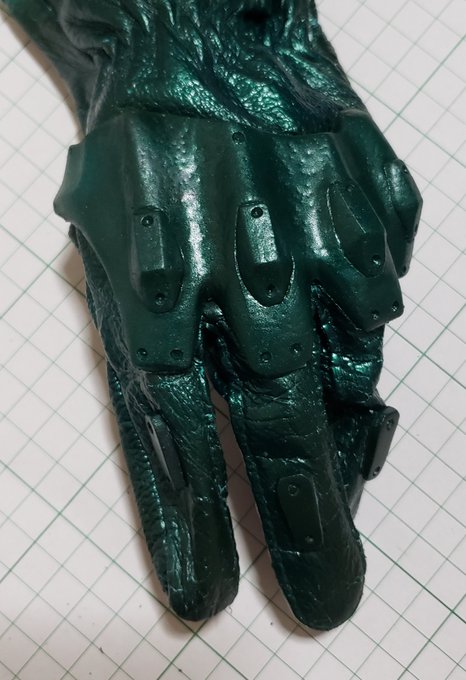 手甲も同時進行。 メンテナンスの時は取り外したいので、極薄面ファスでの取り付け。 庵野秀明展に展示されていた実物スーツのように中の手の「曲げ」に対して柔軟に追従する。 #コスプレ #マキシマ造形 #シン・仮面ライダー #シン・仮面ライダーみた twitter.com/MAXTFEX/status…