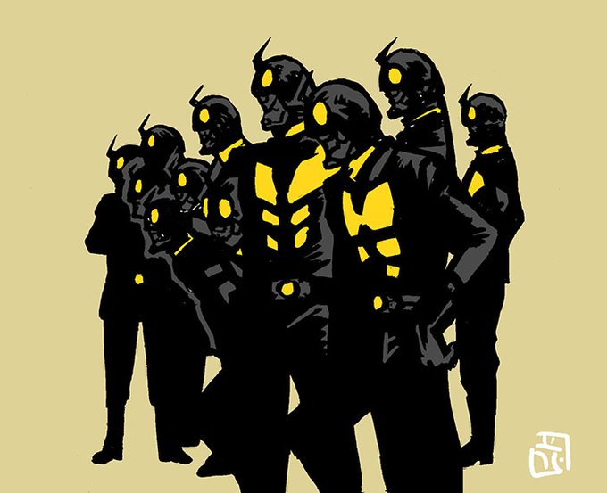 映画「シン・仮面ライダー」 ハチオーグと後ろにいる手下の女たちの並びめちゃくちゃ良かったな…………というファンアートです キャラクター性も衣装も音楽もすべてが刺さりまくったハチオーグ…🐝👘 #シン・仮面ライダー #シン仮面ライダーみた