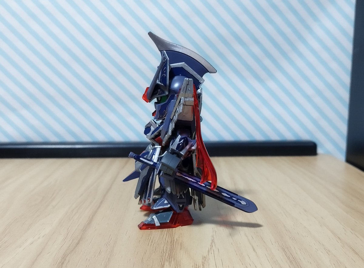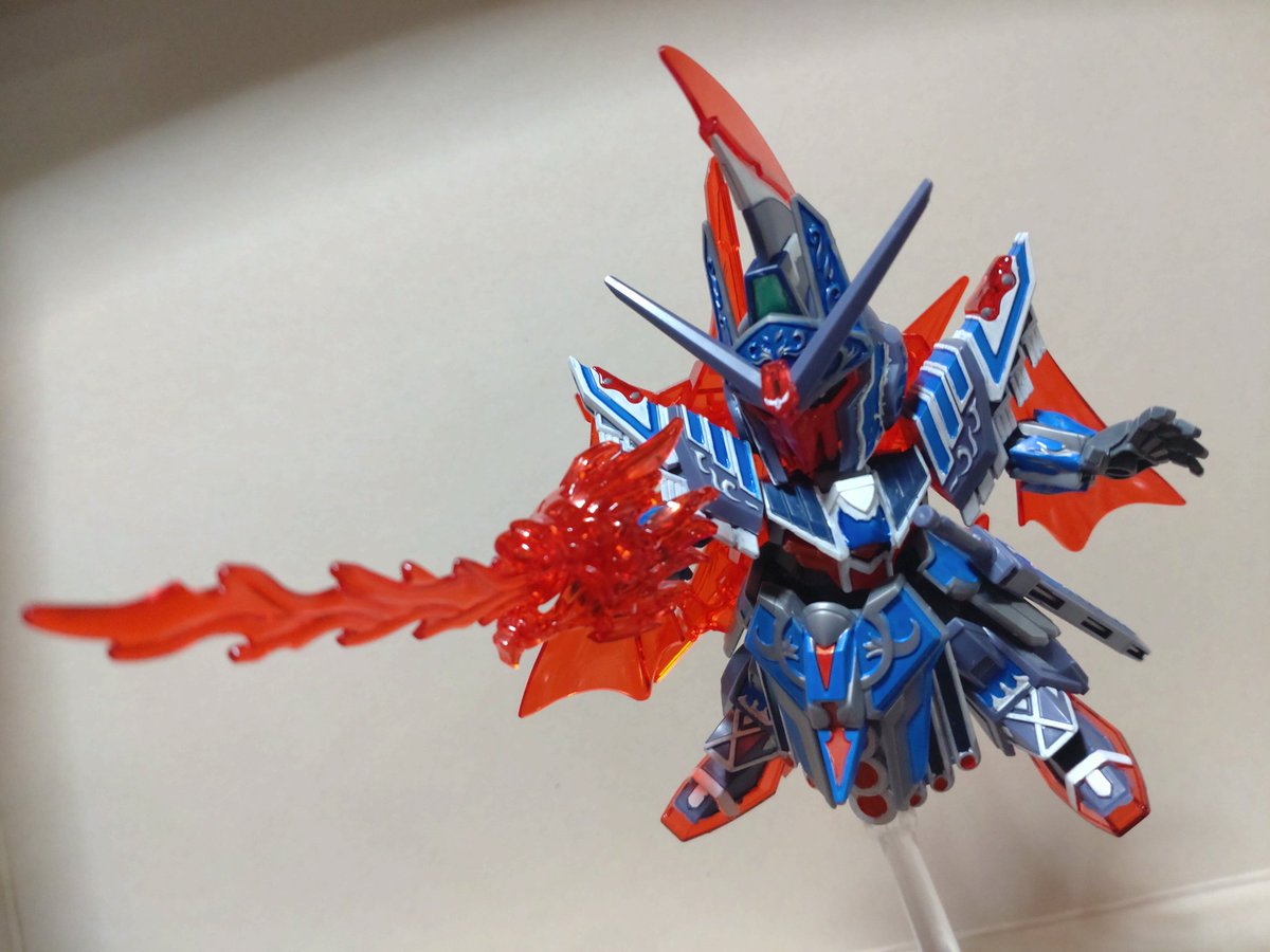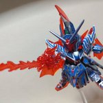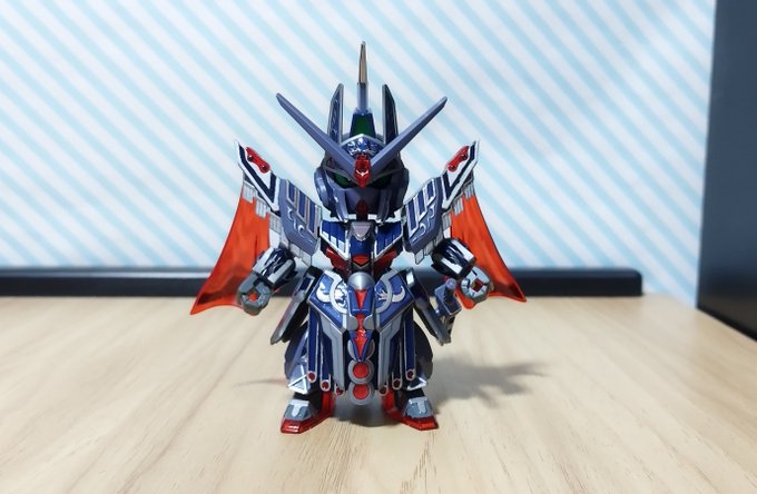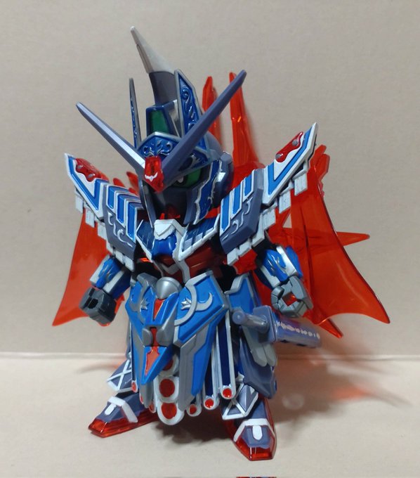 #シーザーレジェンドガンダム 完成〜 ティターンズブルーを切らしてたので、少し明るめだけど、ブルーで塗装。2Pカラーっぽくて個人的に割と気に入ってたり クリアパーツまわりのギミックぜんぶ好き (リプ続) #ガンプラ #SDGW #ガンプラの画像貼るとRTされると聞いて #ガンプラ好きと繋がりたい