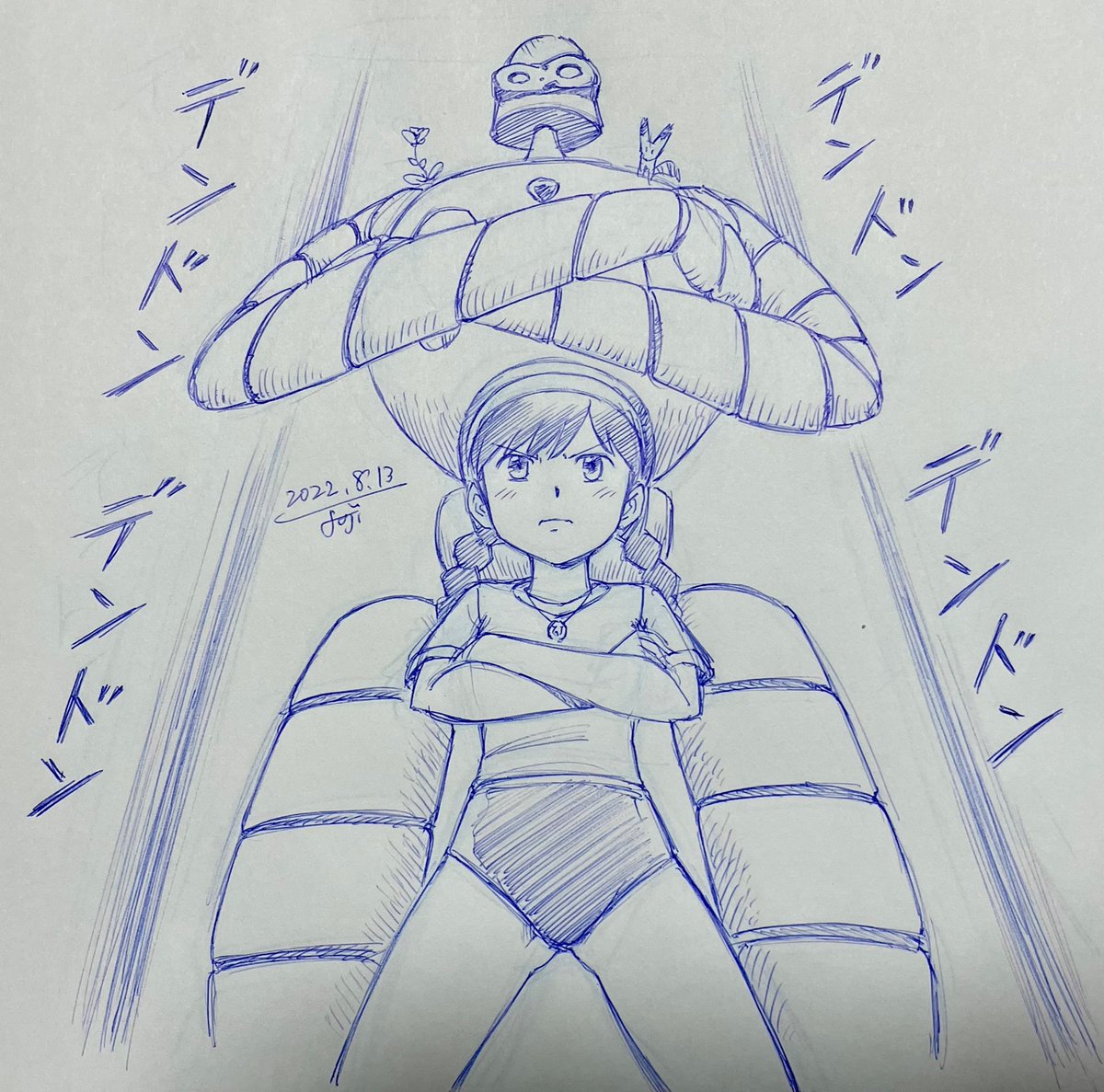 あ~(=゚ω゚)ノウニャンコ♪ この絵の続きを描いたので~ まずはこちらをあげてから続きをあげるニョロね~(ノシ'ω')ノシッポバンバン! #天空の城ラピュタ #シータ #絵描きさんと繋がりたい