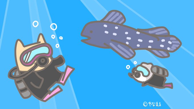 本日は「#シーラカンスの日」ですよ♪ 生きた化石に会ってみたいけど、日本の水族館には生きてるシーラカンスはいないんだって。ちょっと残念😮 #イラスト #今日は何の日 #絵描きさんと繋がりたい #イラスト好きさんと繋がりたい #ゆるいイラスト #illustration