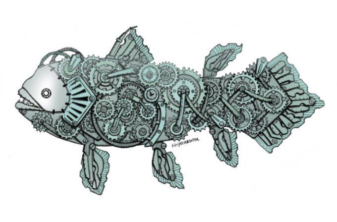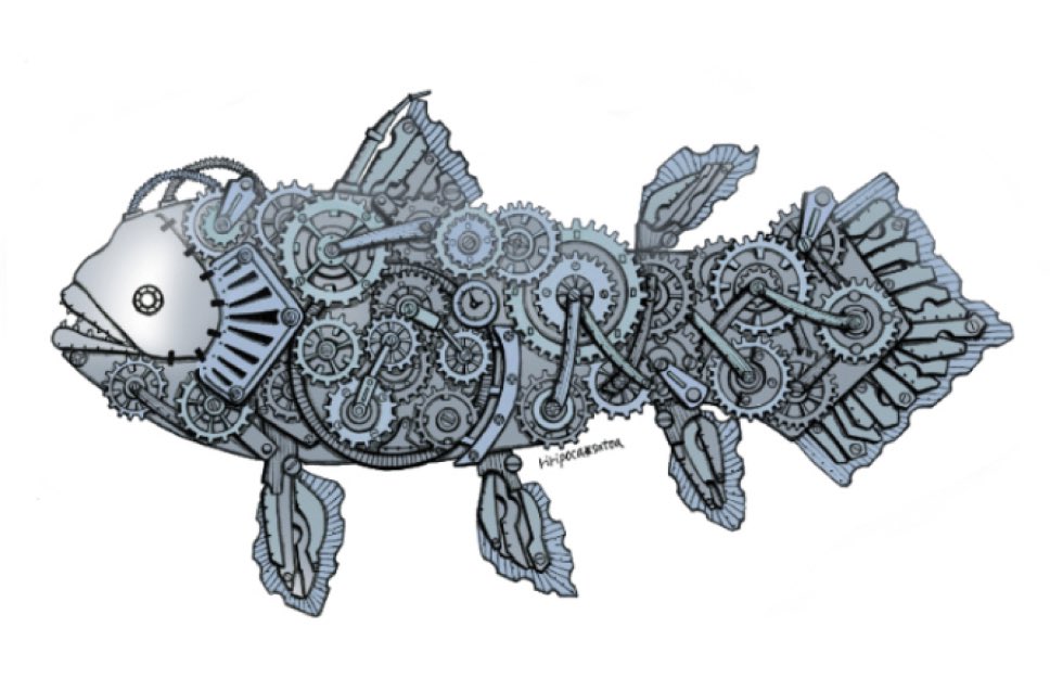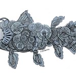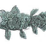 おはようございます(*´꒳`*) 本日もよろしくお願いします♪ ⚙シーラカンス⚙ #スチームパンクイラスト #歯車イラスト #ペン画 #シーラカンス #絵柄が好みって人にフォローされたい