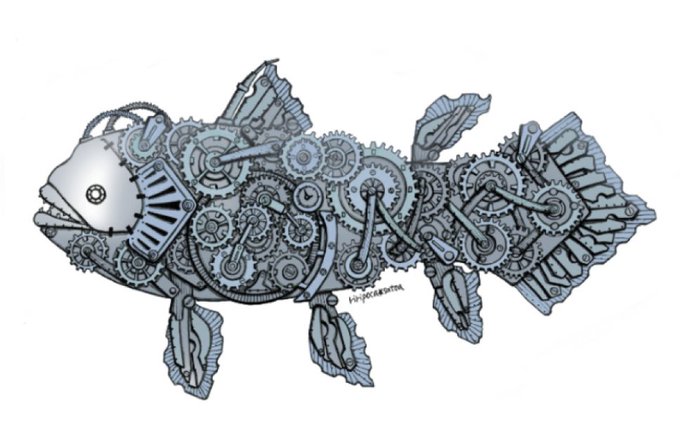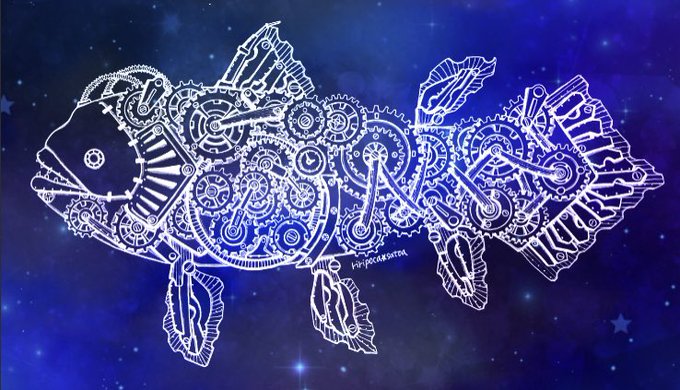 お疲れ様でした✨✨ ゆっくりお過ごしください♪♪♪ #シーラカンス #スチームパンクイラスト #歯車イラスト #ペン画 #絵描きさんと繋がりたい #アトリエの系譜plus #アトリエの系譜