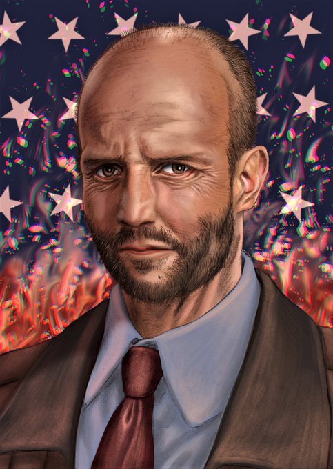 推しのステイサムが一応完成。 サンダース大附属高校の顧問でこんな雰囲気のそっくりさん登場させたくなる。 #似顔絵 #イラスト #イラスト練習中 #ジェイソン・ステイサム #絵柄好みって人にフォローされたい