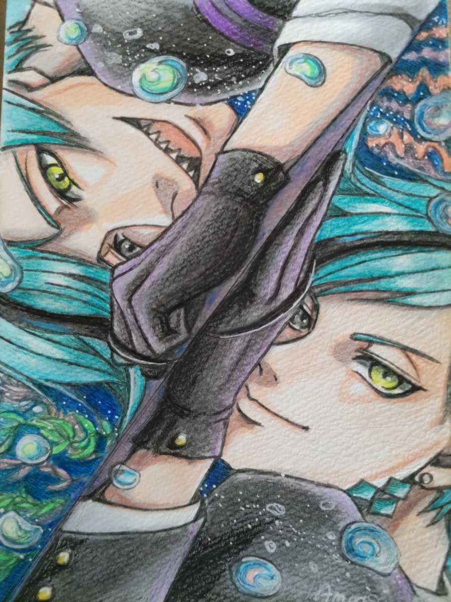 リーチブラザーズ🐬🦈(再喝) 脅してくる系のヤツ #ツイステ #ツイステッドワンダーランド #ツイステ好きと繋がりたい #ツイステ好きさんと繋がりたい #ツイステファンアート #twst #twst好きさんと繋がりたい #イラスト #アナログ #フロイドリーチ #ジェイドリーチ