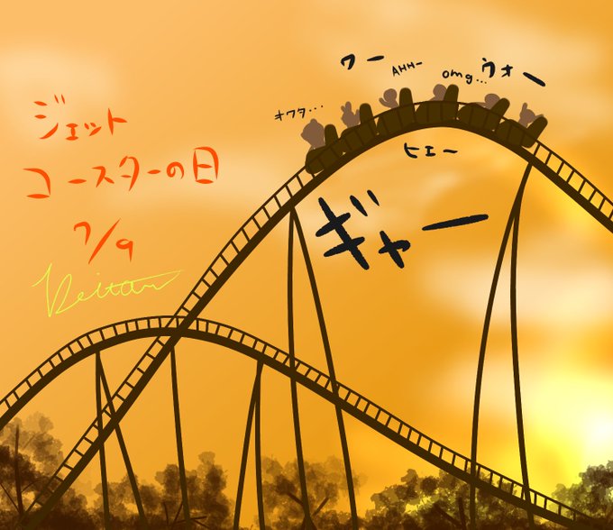 7月9日はジェットコースターの日。1955年、日本初のジェットコースターを設置した、後楽園遊園地が開園した日なんです。ジェットコースターの車輪に塗られている潤滑剤は、気温が高い日は滑りやすく、夏はいちばんスピードが出るらしいですよ〜 #ジェットコースターの日 #イラスト好きな人と繋がりたい