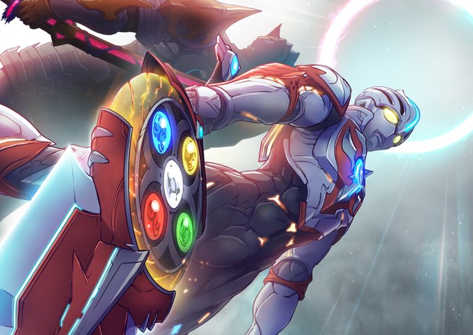 ジェネスタ(勝手に)連動企画_ウルトラマンオーブ⑥ 「腐れ縁の男」ということで過去の同人誌から。ガイさんとジャグラーの関係性を意識して描いた一枚なのです。 #ジェネスタ #ウルトラマンオーブ