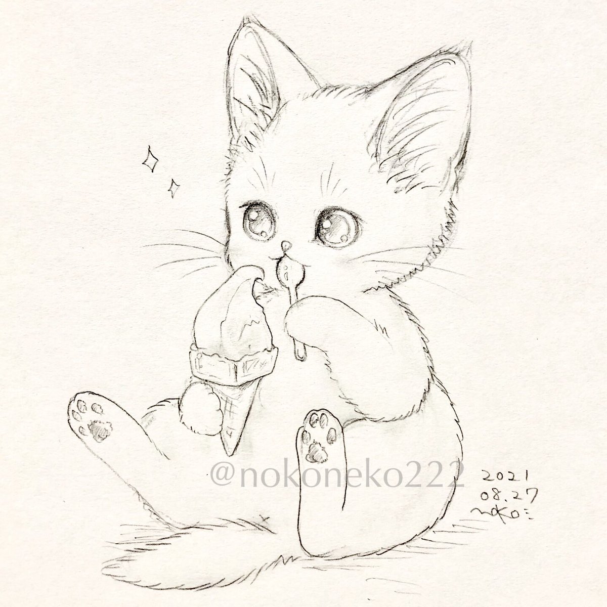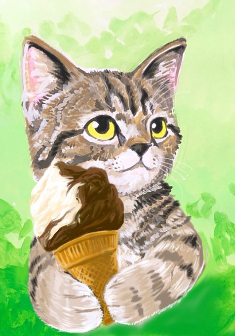 僕が食べるの‼️❤️❤️ アクリルガッシュ アイビスペイント A5ケント紙 今日8月27日はジェラートの日だそうです❤️ ジェラートを食べたいニャンコさん描きました❤️❤️❤️❤️ #猫好きさんと繋がりたい #ジェラートの日