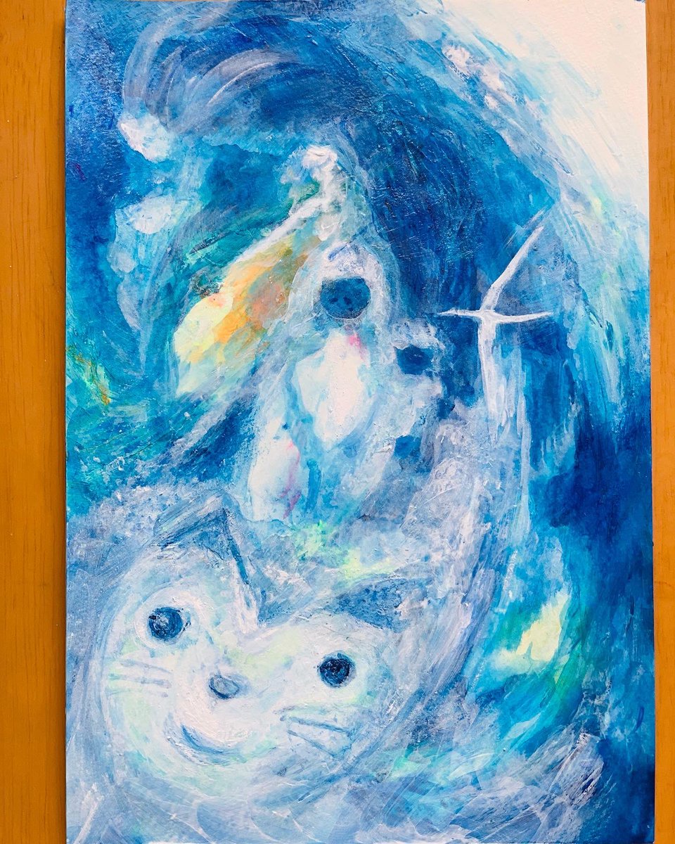 『キリンと草原』 2019年7月23日 ———今見えているこの景色はぼくの心の中にある #シリウス紙 (@orionwirgman ) #アクリル絵具 #ジェッソ (@HolbeinArt ) #ジェルメディウム (@Liquitex_Jp ) #絵描きさんと繋がりたい #創作クラスタさんと繋がりたい