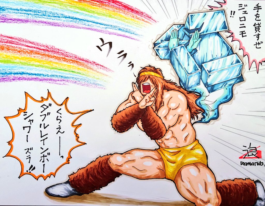 明日はジェロさんの誕生日? 6月は誕生日多いなぁ🤔 あ、これは昨年の作品です。 誰もが予想したカピラリアの雄叫びは 登場せず、 まさかのカピラリアチョップ でした。。。 ファンの予想の斜め上をいく ゆでたまご先生。。。流石っすね😅 #ジェロニモ生誕祭 #キン肉マンアニメ化 #イラスト