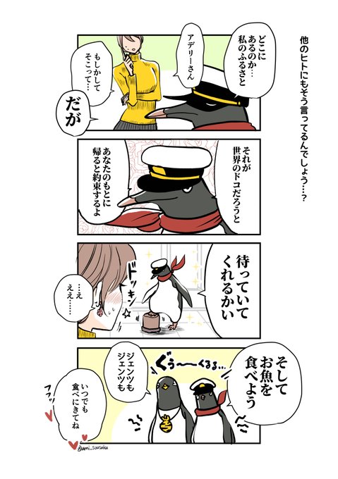 #ジェンツーきたよ 111、112枚め🍪 カタカナはまだ🐧 今までのおはなしはモーメントからも読めます。 twitter.com/i/events/11067… C100新刊が通販中です melonbooks.co.jp/fromagee/detai… comicomi-studio.com/goods/detail?g…