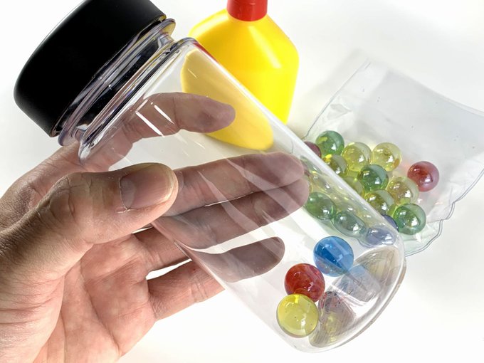 今日も1日がんばるぞい! 唐突に!「水溶き木工用ボンド」の作り方。 100円均一でボンドとボトルとビー玉を買ってきて、水とボンド半々くらい入れてシェイク! 水溶き木工用ボンドでツヤが出るのは、往々に撹拌不足が多い。基本作り置きしても経年で傷まないから便利よ。 #ジオラマテクニックバイブル