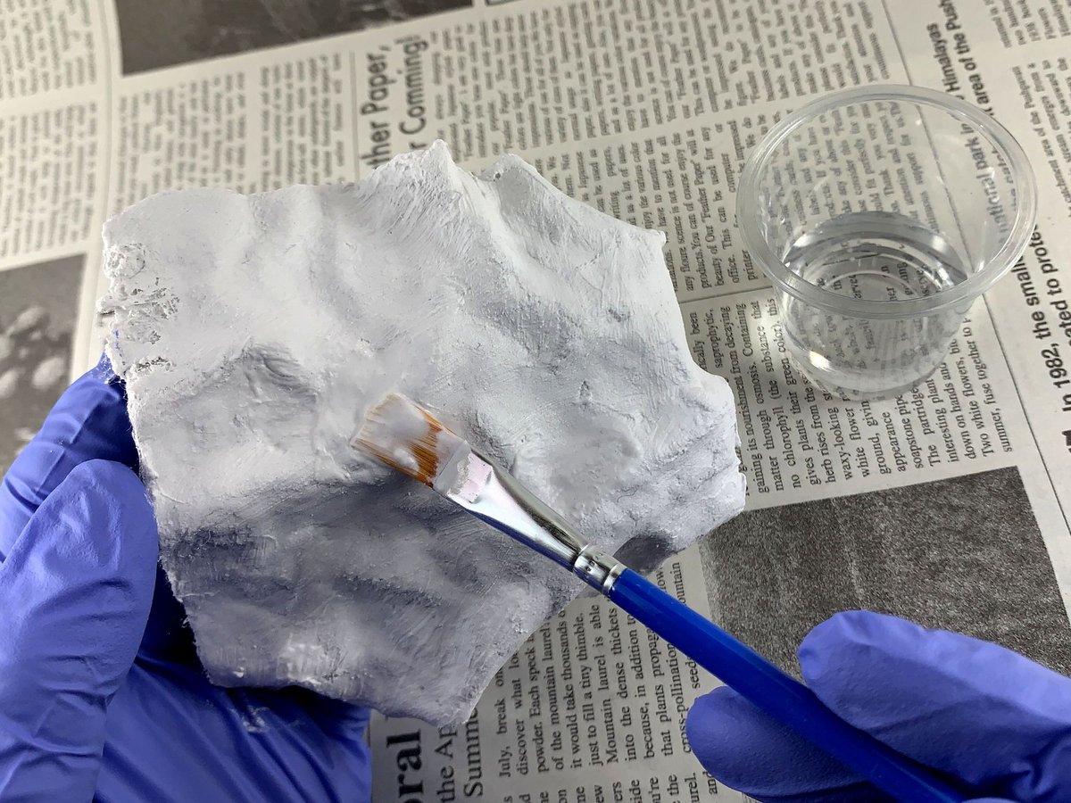 ジェッソでドライブラシ(コントラスト強調)→クレオスのウェザリングカラー「グランドブラウン」「ラストオレンジ」15倍程度の希釈でウォッシング→薄め液をランダム上塗りしてふき取り。 ウェザリングカラーした筆は水で洗えないから、油彩用にすると良いですよ。 #ジオラマテクニックバイブル