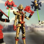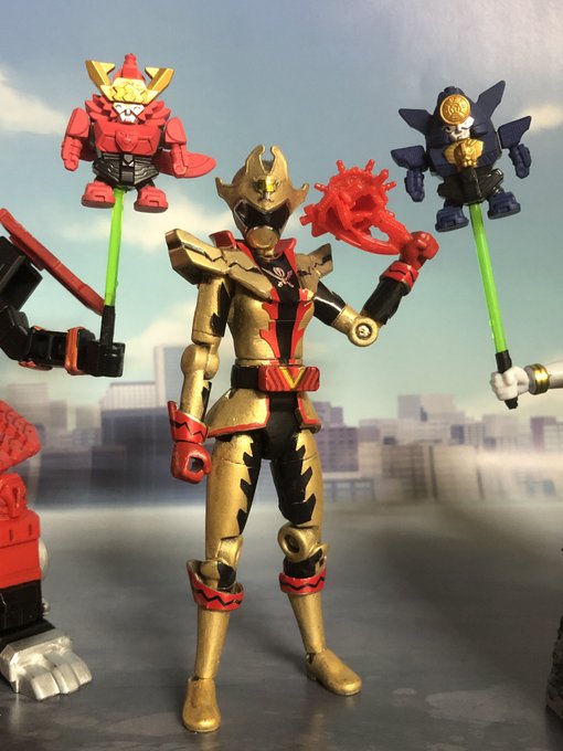 フリントツーカイザー完成しました^_^ 勇動キラメイグリーンとのミキシングです なかなか格好良くなってくれたのではと思います #ジオラマ情景カレンダー 街を使用 #ゼンカイジャー #ジオラマブレイカー #ニチアサフィギュア改造部 #nitiasa