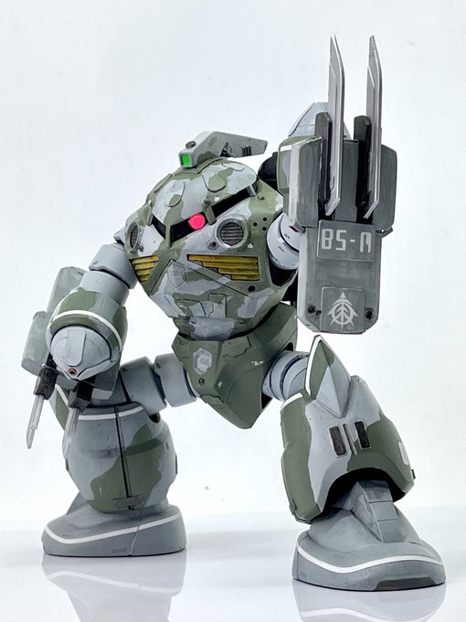 HGUC ハイゴック 完成です♪ 色合いは基本設定を踏襲し、塩ケープ剥がしを中心としたウェザリング仕上げとなっております♪♪ デティールアップは最小限にとどめて、スジボリの追加とモノアイを別パーツと交換しました♪ ↓画像が続きます♪♪ #ポケットの中の戦争 #ジオン水泳部