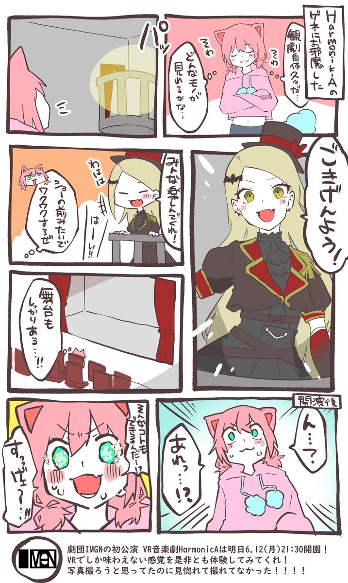 #Harmonic_A のゲネにお邪魔してきました! わくわくする要素がたくさん詰まっている素敵な時間でした!! 演者さんやパーティクル、サウンド こだわりがよく伝わってくる見ごたえのある公演です! 初公演は明日12日(月)だよ!要チェックだ!!! #VRC漫画 #ジカウムにっき