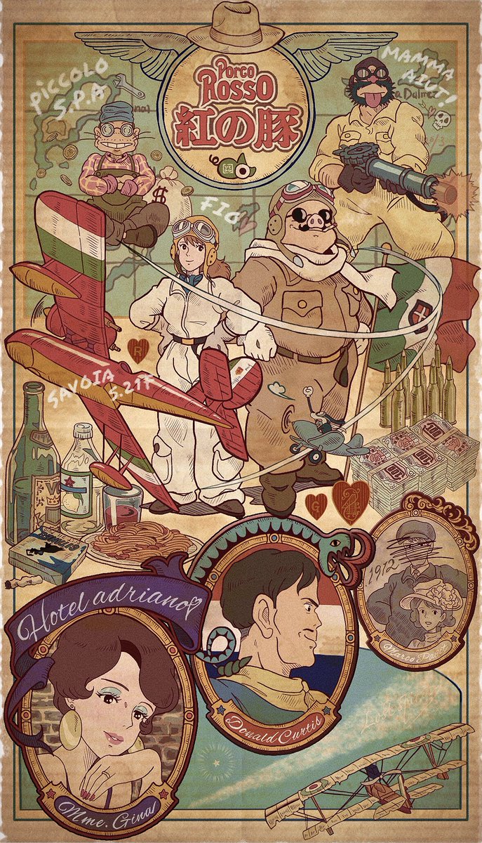 紅の豚は今年で30周年記念ですね‼️🐷💐🌟 ヴィンテージポスター風に描いてみました🥰 浪漫がたくさん詰まった紅の豚が大好きだ〜!!!;;////❤️❤️❤️ #紅の豚 #ジブリファンアート